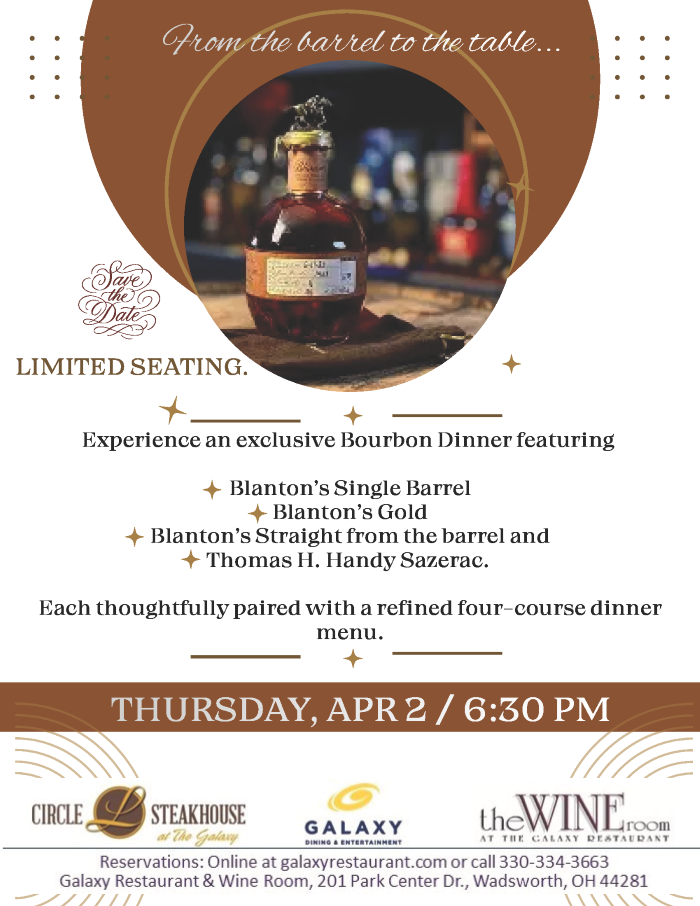 Join us for a special Blantons Bourbon Tasting and Dinner.