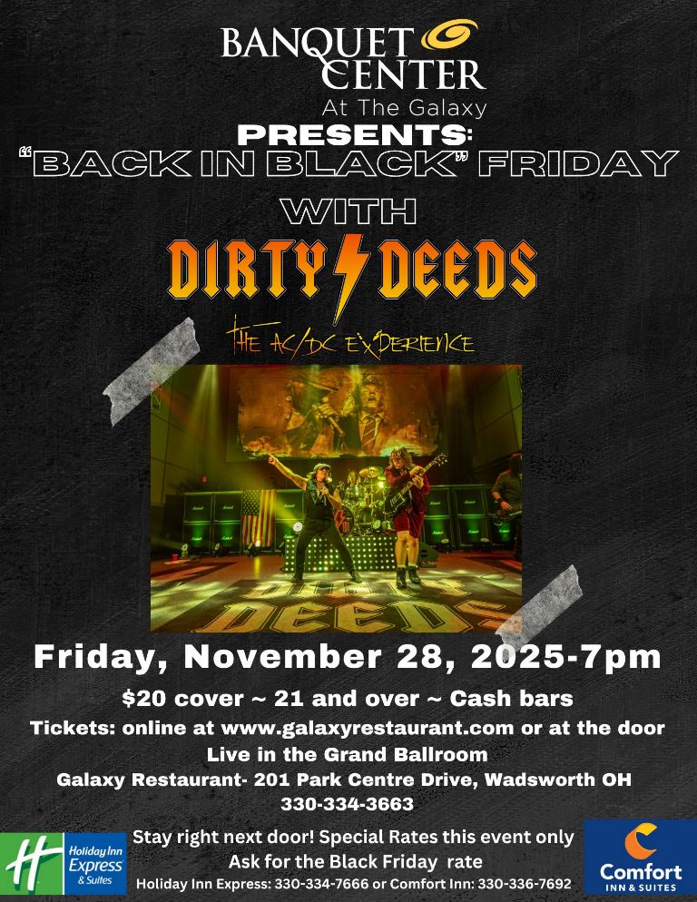 Join us for the Back in Black Friday party with the AC/DC experience with the Dirty Deeds band.
